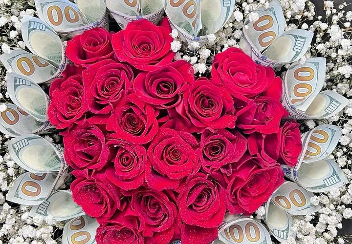 A stylish and creative bouquet made entirely with money.